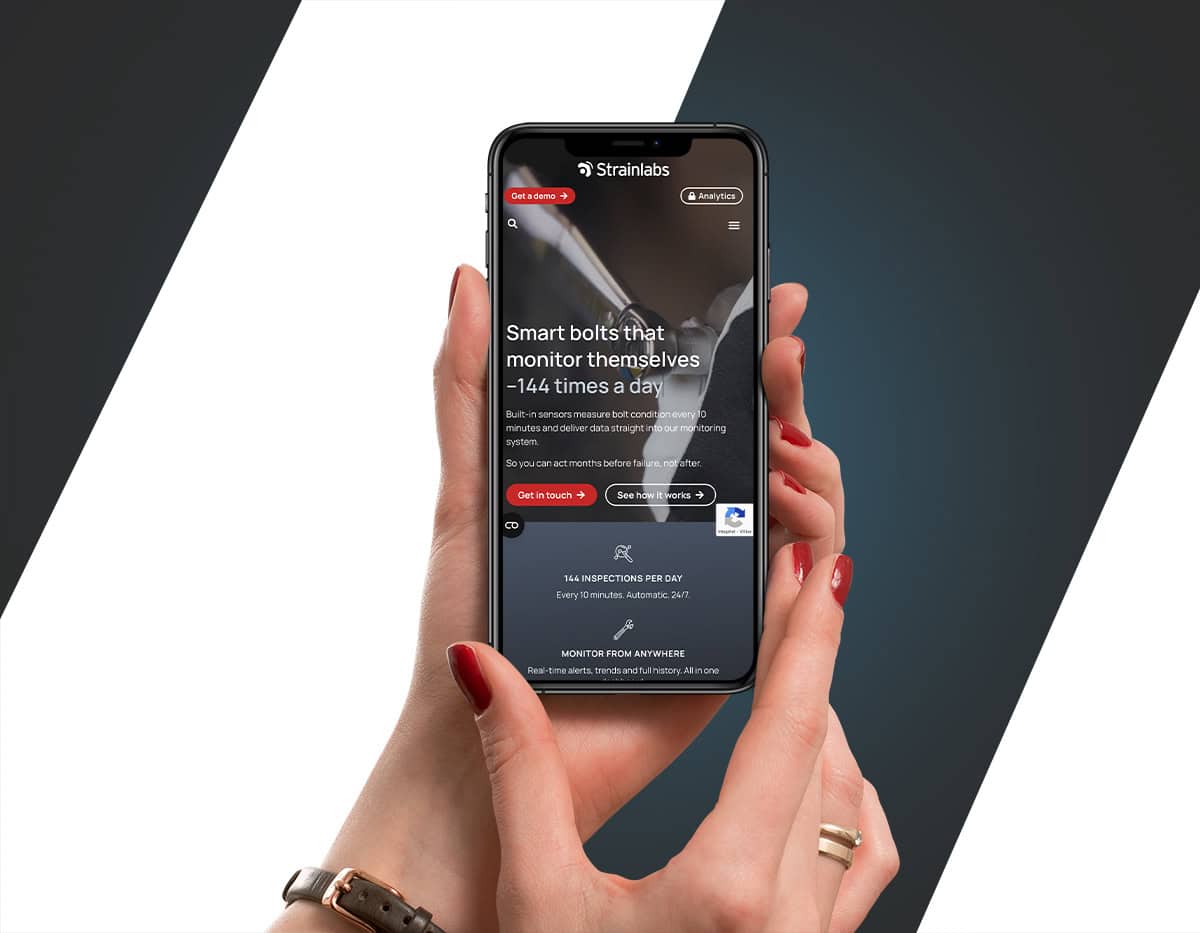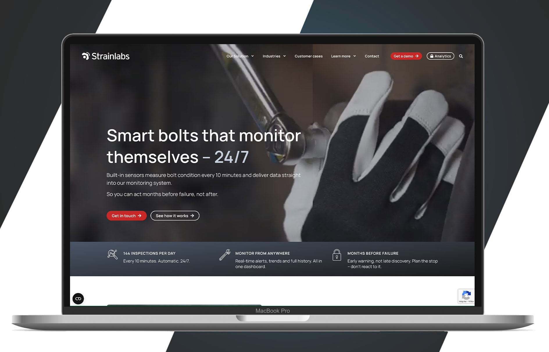 Strainlabs gör något så innovativt och häftigt som smarta bultar som övervakar sig själva var tionde minut och skickar data in i monitoreringssystemet. Vi fick bygga den nya webben!