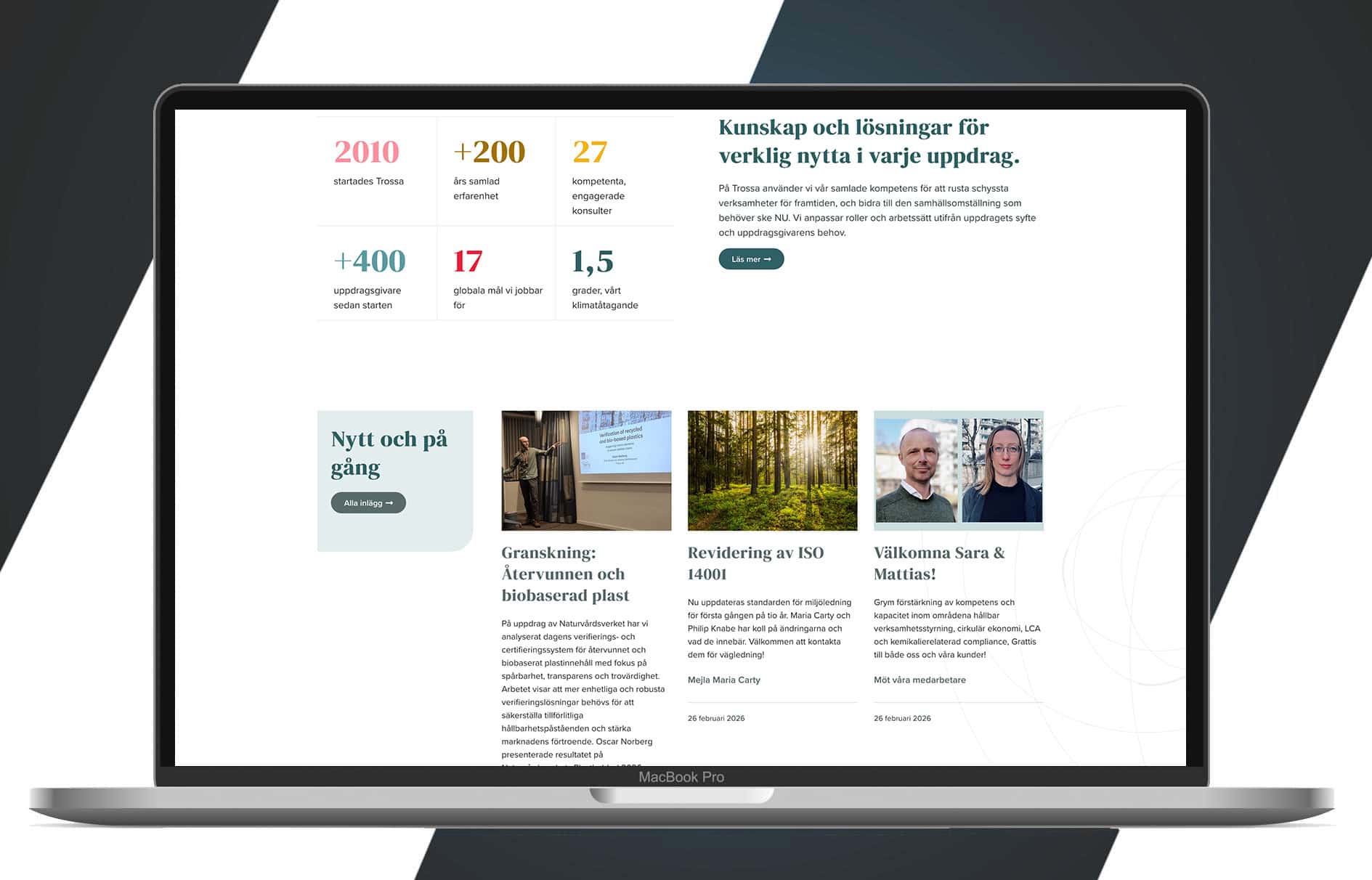 Trossa erbjuder tjänster och kompetens för hållbar affärs- och verksamhetsutveckling. Vi fick bygga webben!